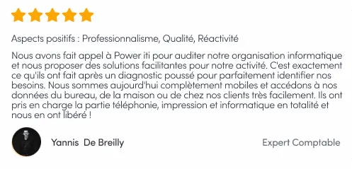 Nous sommes aujourd’hui complètement mobiles et accédons à nos données du bureau, de la maison ou de chez nos clients très facilement. Ils ont pris en charge la partie téléphonie, impression et informatique en totalité et nous en ont libéré !